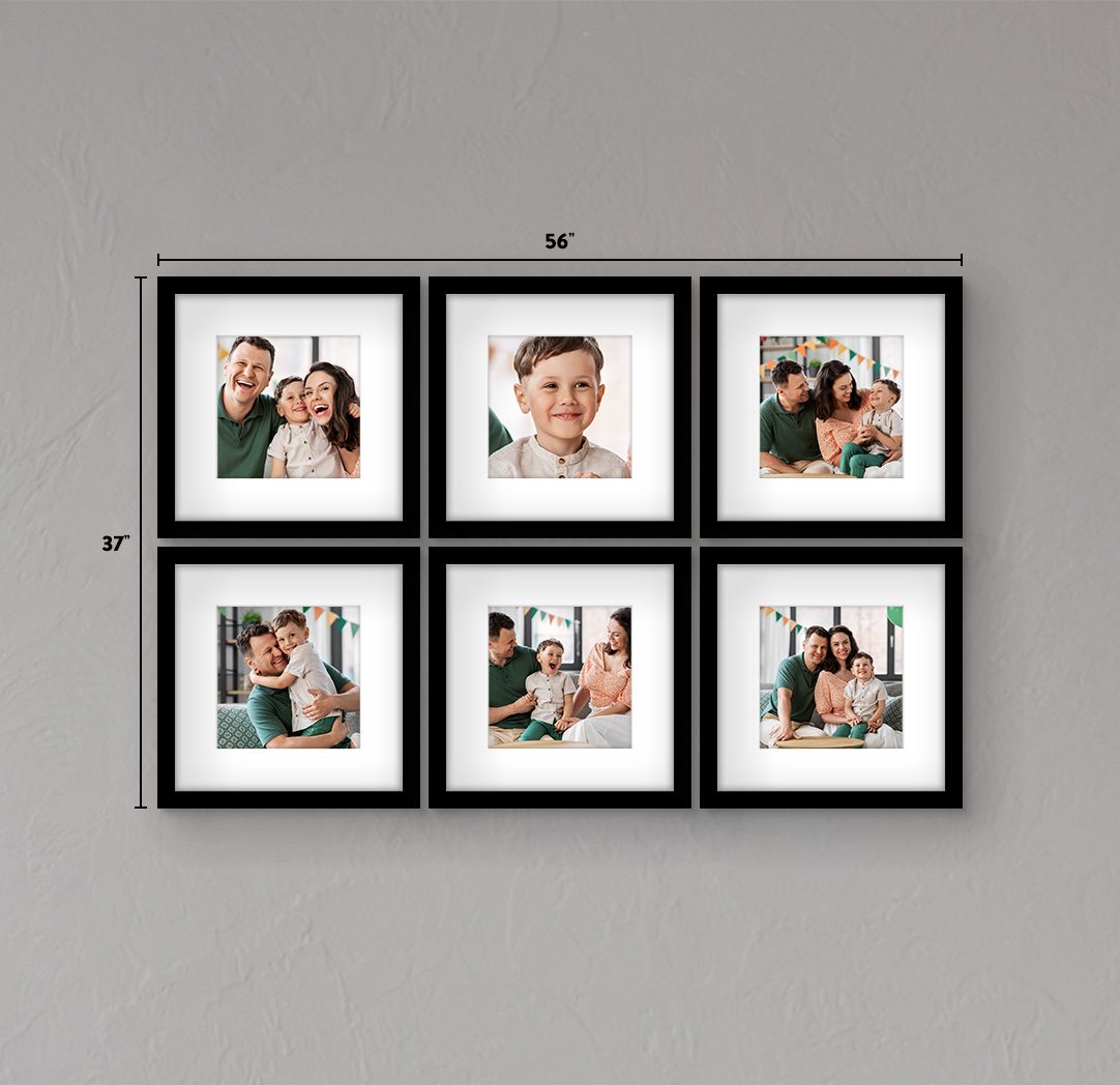The perfect solution for that empty wall. Create a beautiful feature for your home with Gallery Wall Frames. Available in a variety of sizes ranging from 8x8 to 20x30 and available in different sets and combinations. Frames are available in Natural Wood, Black, White & Grey to match any décor or style. Whether you are hanging 1 frame or 9, each frame comes with a hanging template to make installation and spacing easy.