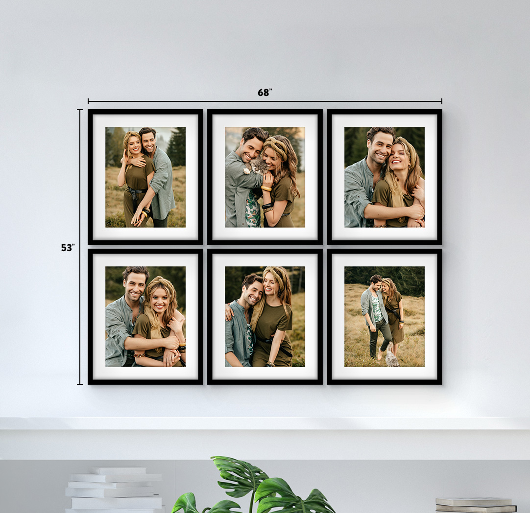 The perfect solution for that empty wall. Create a beautiful feature for your home with Gallery Wall Frames. Available in a variety of sizes ranging from 8x8 to 20x30 and available in different sets and combinations. Frames are available in Natural Wood, Black, White & Grey to match any décor or style. Whether you are hanging 1 frame or 9, each frame comes with a hanging template to make installation and spacing easy.