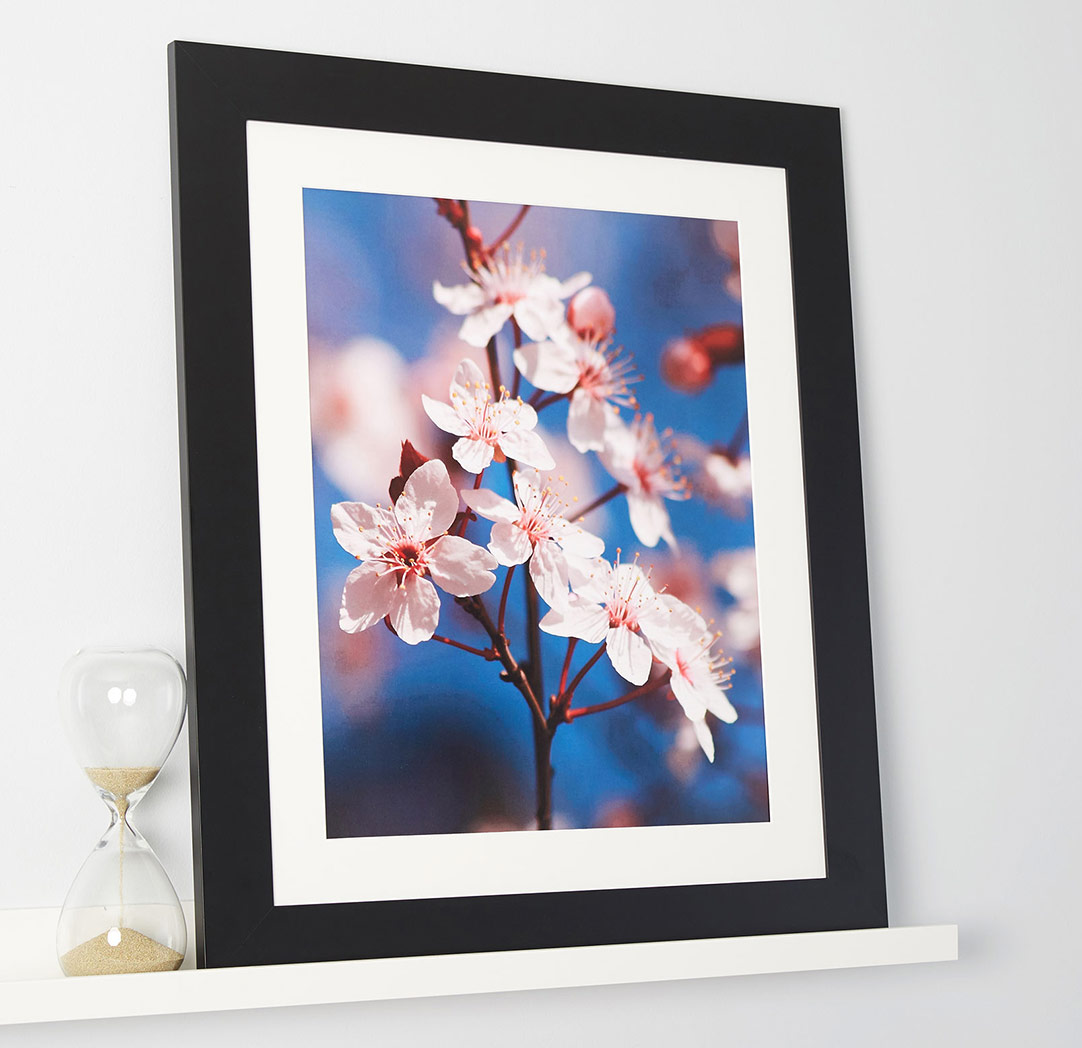 The perfect package of print & frame! This solid wood frame with glass insert & hanging system is made complete with an acid free mat 16x20 print. Frame dimensions are 23.5"x27.5".