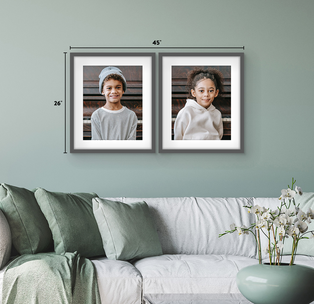 The perfect solution for that empty wall. Create a beautiful feature for your home with Gallery Wall Frames. Available in a variety of sizes ranging from 8x8 to 20x30 and available in different sets and combinations. Frames are available in Natural Wood, Black, White & Grey to match any décor or style. Whether you are hanging 1 frame or 9, each frame comes with a hanging template to make installation and spacing easy.