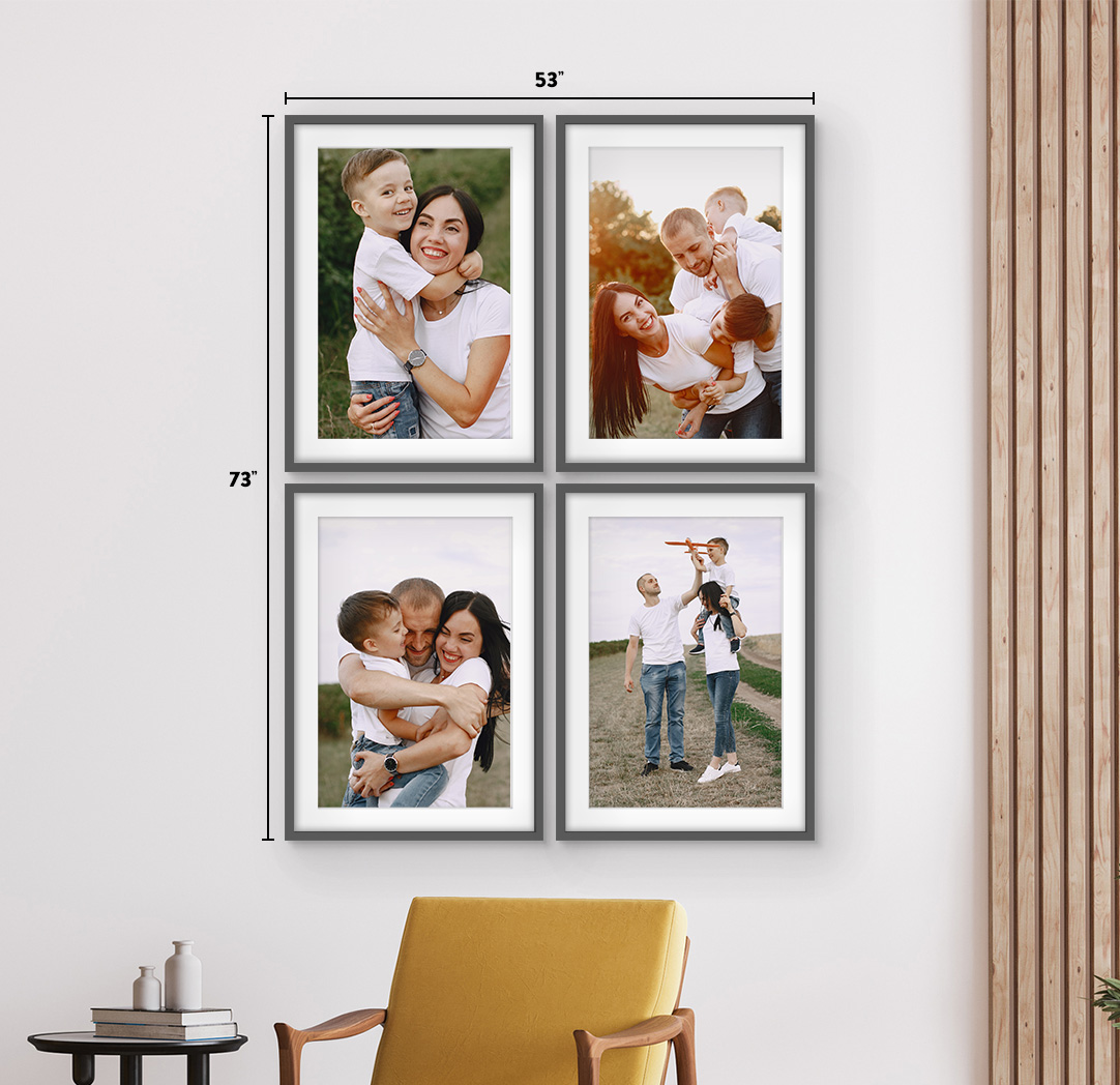 The perfect solution for that empty wall. Create a beautiful feature for your home with Gallery Wall Frames. Available in a variety of sizes ranging from 8x8 to 20x30 and available in different sets and combinations. Frames are available in Natural Wood, Black, White & Grey to match any décor or style. Whether you are hanging 1 frame or 9, each frame comes with a hanging template to make installation and spacing easy.
