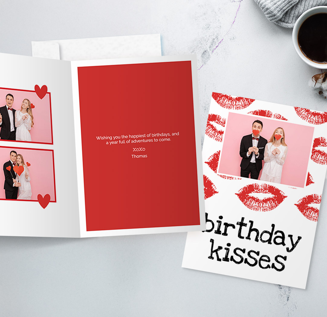 Spread cheer and love this year. Add up to 8 of your favourite photos and choose a professionally designed theme to get started. All themes are fully customizable, so be sure to make your card truly special and unique. Double sided, folded and printed on bright white card stock. Includes white envelope.