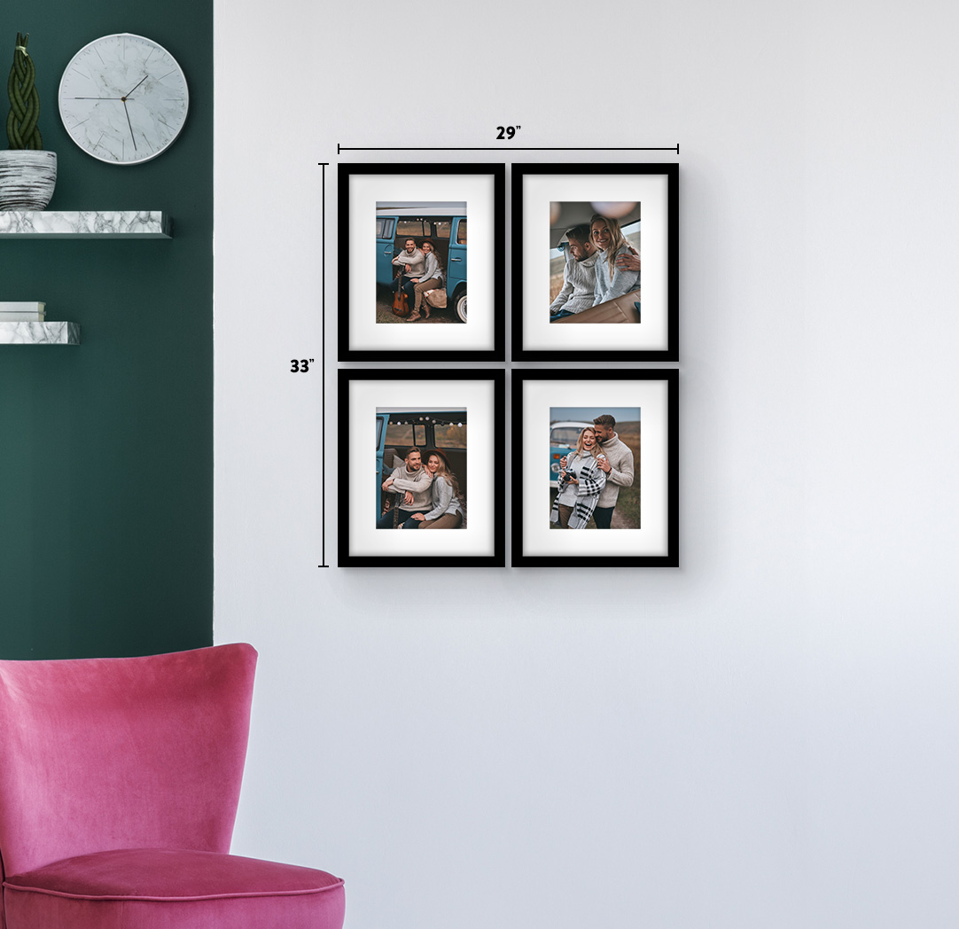 The perfect solution for that empty wall. Create a beautiful feature for your home with Gallery Wall Frames. Available in a variety of sizes ranging from 8x8 to 20x30 and available in different sets and combinations. Frames are available in Natural Wood, Black, White & Grey to match any décor or style. Whether you are hanging 1 frame or 9, each frame comes with a hanging template to make installation and spacing easy.