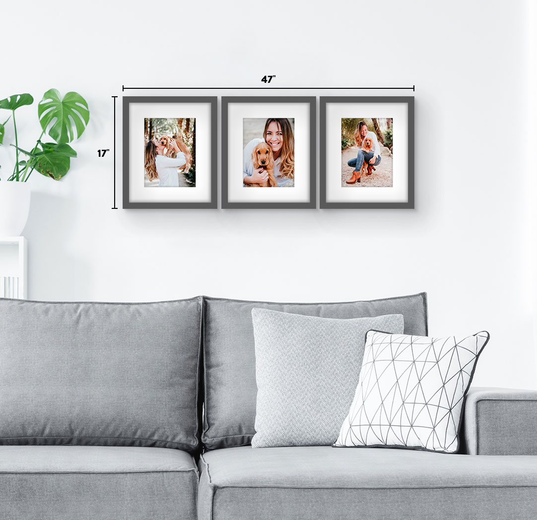 The perfect solution for that empty wall. Create a beautiful feature for your home with Gallery Wall Frames. Available in a variety of sizes ranging from 8x8 to 20x30 and available in different sets and combinations. Frames are available in Natural Wood, Black, White & Grey to match any décor or style. Whether you are hanging 1 frame or 9, each frame comes with a hanging template to make installation and spacing easy.