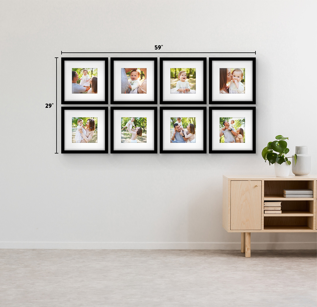 The perfect solution for that empty wall. Create a beautiful feature for your home with Gallery Wall Frames. Available in a variety of sizes ranging from 8x8 to 20x30 and available in different sets and combinations. Frames are available in Natural Wood, Black, White & Grey to match any décor or style. Whether you are hanging 1 frame or 9, each frame comes with a hanging template to make installation and spacing easy.