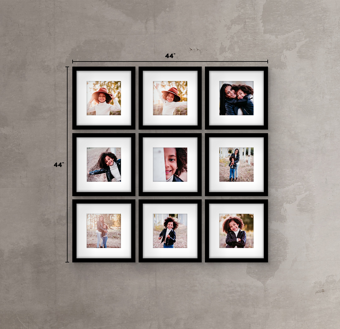 The perfect solution for that empty wall. Create a beautiful feature for your home with Gallery Wall Frames. Available in a variety of sizes ranging from 8x8 to 20x30 and available in different sets and combinations. Frames are available in Natural Wood, Black, White & Grey to match any décor or style. Whether you are hanging 1 frame or 9, each frame comes with a hanging template to make installation and spacing easy.