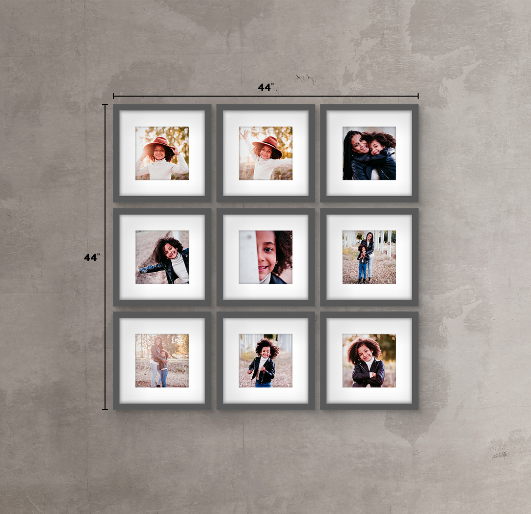 The perfect solution for that empty wall. Create a beautiful feature for your home with Gallery Wall Frames. Available in a variety of sizes ranging from 8x8 to 20x30 and available in different sets and combinations. Frames are available in Natural Wood, Black, White & Grey to match any décor or style. Whether you are hanging 1 frame or 9, each frame comes with a hanging template to make installation and spacing easy.