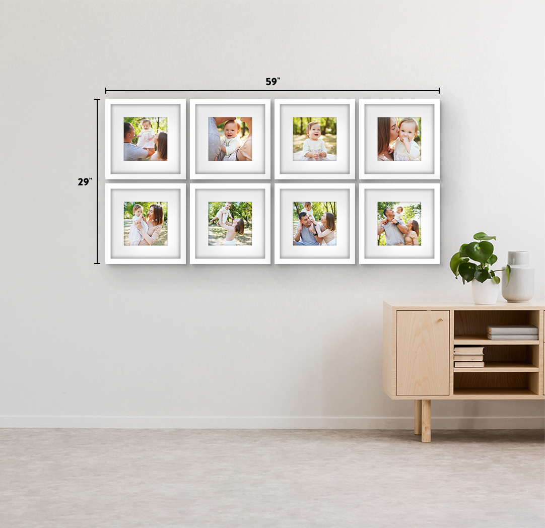 The perfect solution for that empty wall. Create a beautiful feature for your home with Gallery Wall Frames. Available in a variety of sizes ranging from 8x8 to 20x30 and available in different sets and combinations. Frames are available in Natural Wood, Black, White & Grey to match any décor or style. Whether you are hanging 1 frame or 9, each frame comes with a hanging template to make installation and spacing easy.