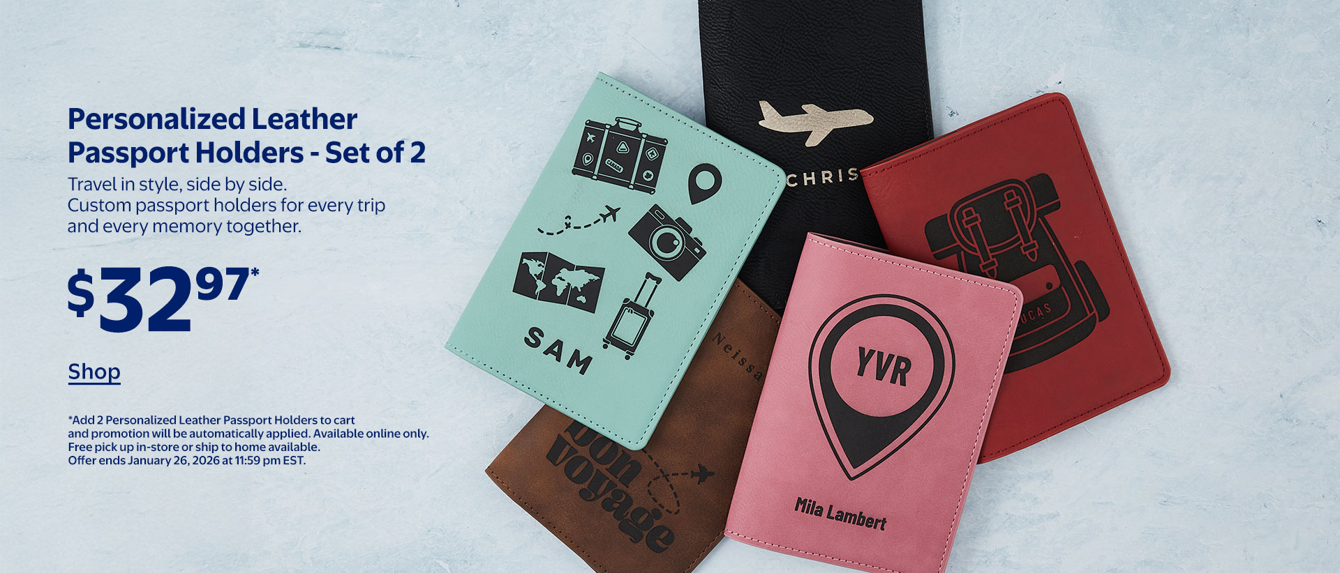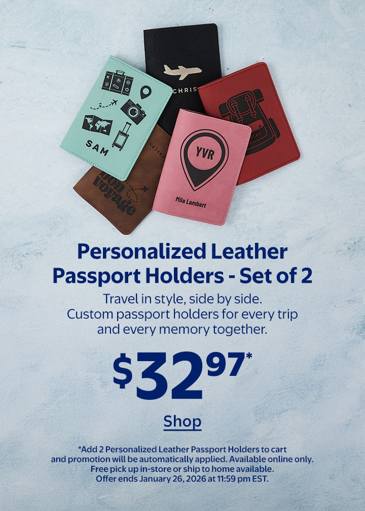Make finding your luggages a little easier with a personalized leather luggage tag. Made with a sleek and sturdy black leather featuring a gold reveal.