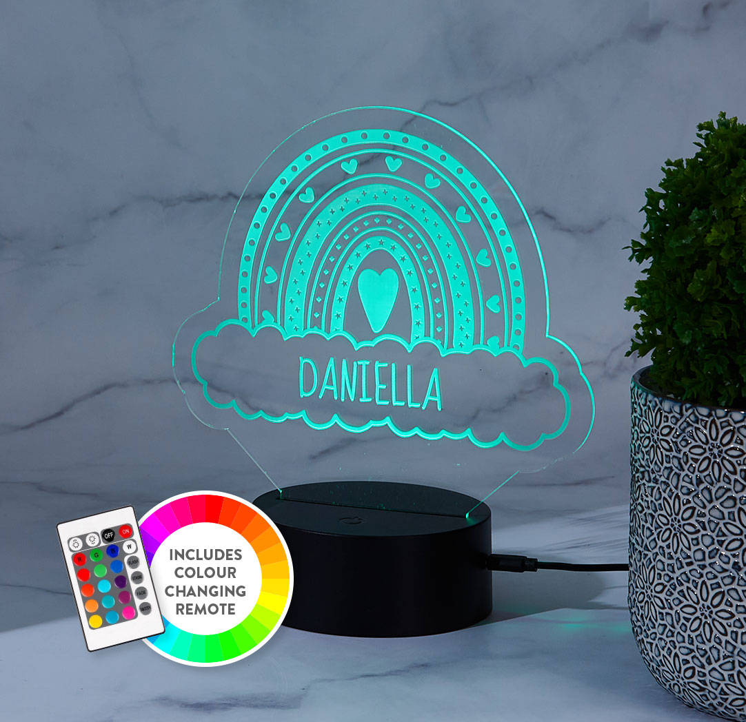 Compliment your décor, use it as a cake topper or maybe it can be the perfect nightlight for your little one. So many possibilities with the personalized LED signs. Available in a variety of designs and styles that are approximately 10" tall (heights may vary by design). Choose from a Black, Cracked Black, White or 2 styles of Wood base. Each LED sign comes with remote to select the colour of LED or switch between different modes. Can operate wirelessly with 3 AA batteries. Batteries not included.