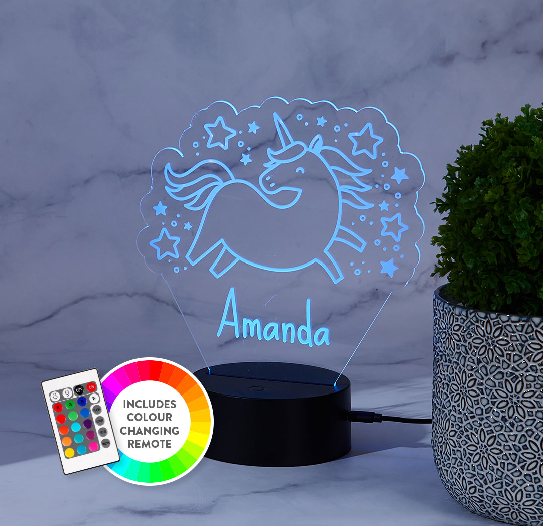 Compliment your décor, use it as a cake topper or maybe it can be the perfect nightlight for your little one. So many possibilities with the personalized LED signs. Available in a variety of designs and styles that are approximately 10" tall (heights may vary by design). Choose from a Black, Cracked Black, White or 2 styles of Wood base. Each LED sign comes with remote to select the colour of LED or switch between different modes. Can operate wirelessly with 3 AA batteries. Batteries not included.