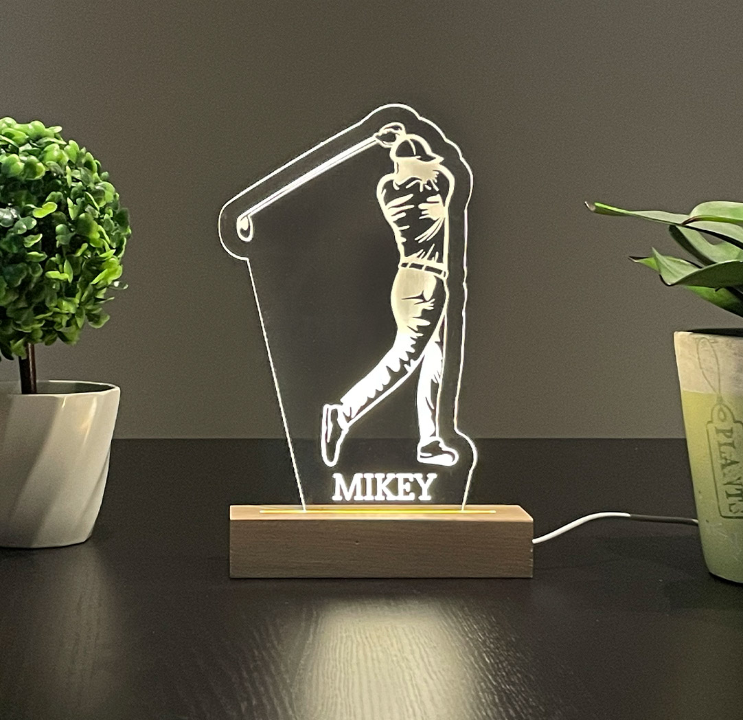 Personalized Wide Wood LED Sign - Male Golfer