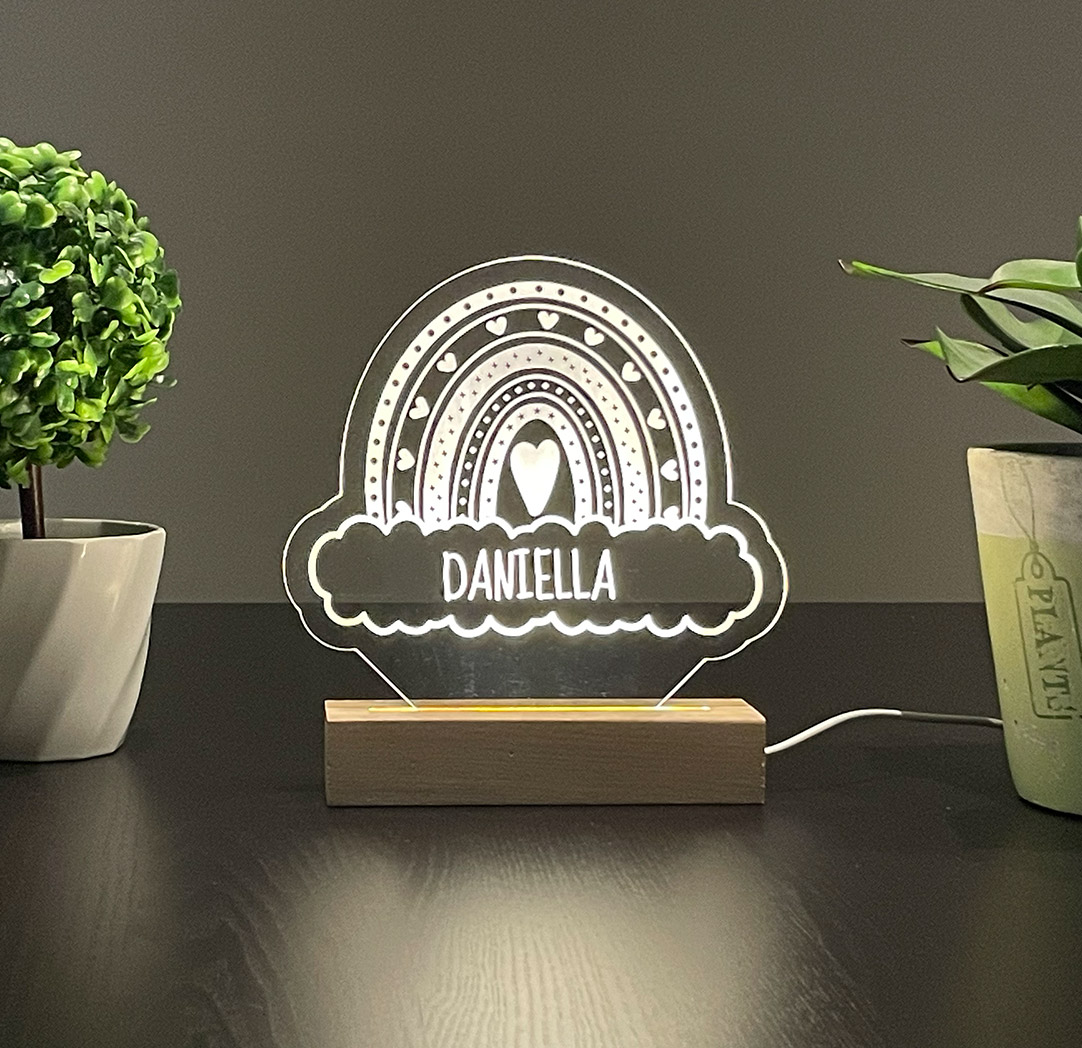 Compliment your décor, use it as a cake topper or maybe it can be the perfect nightlight for your little one. So many possibilities with the personalized LED signs. Available in a variety of designs and styles that are approximately 10" tall (heights may vary by design). Choose from a Black, Cracked Black, White or 2 styles of Wood base.