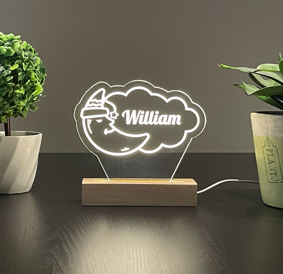Personalized Wide Wood LED Sign - Sleepy Moon