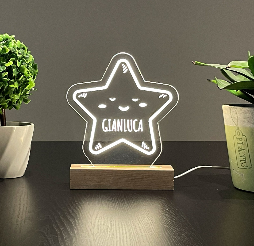 Personalized Wide Wood LED Sign - Star