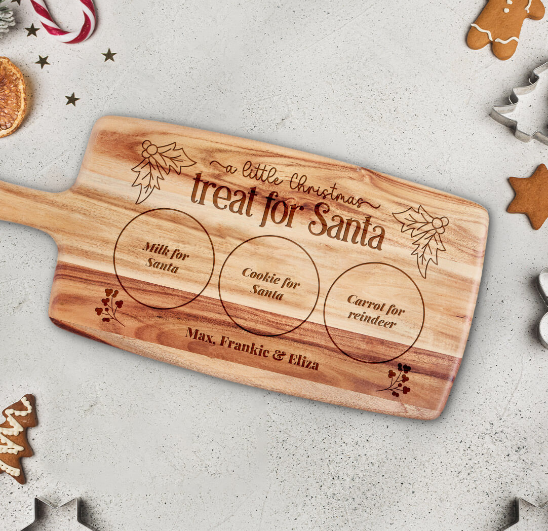 Add a personalized touch to your next party spread. This Acacia Wood Rectangular Cutting board measures 20x8.5". Includes handle with leather strap for convenient hanging or storage. Precision engraved wood adds an elegant touch of texture and style to your kitchen décor.