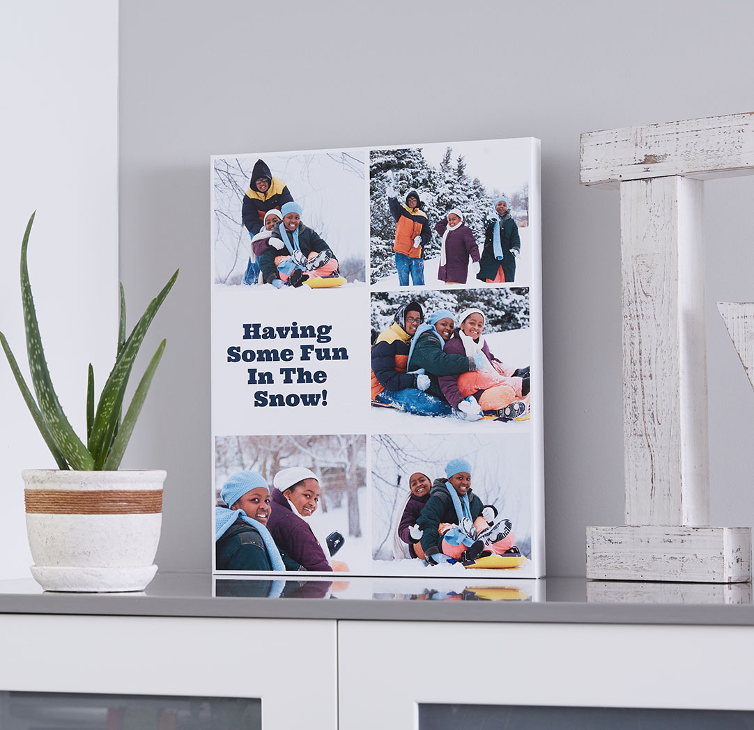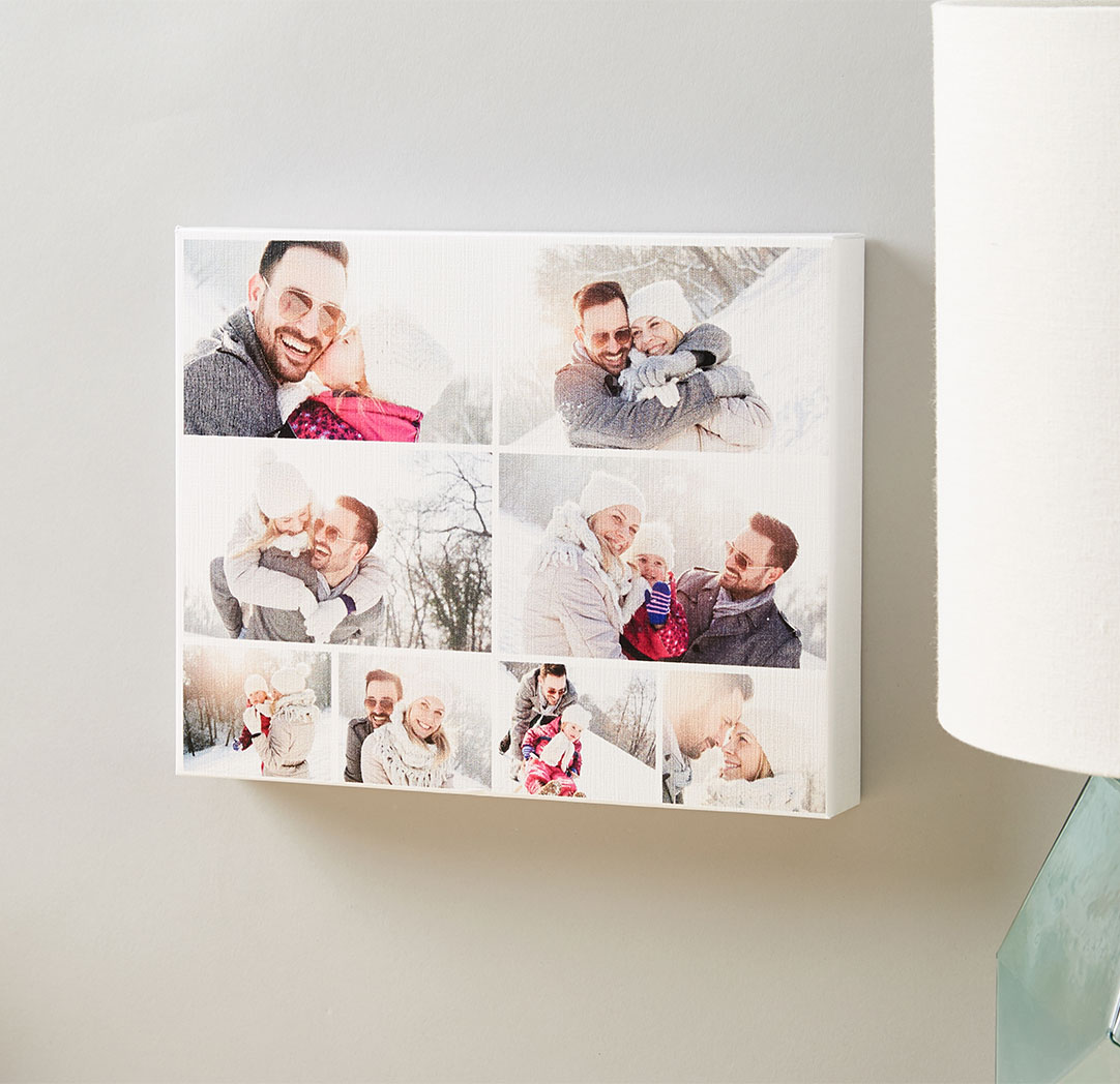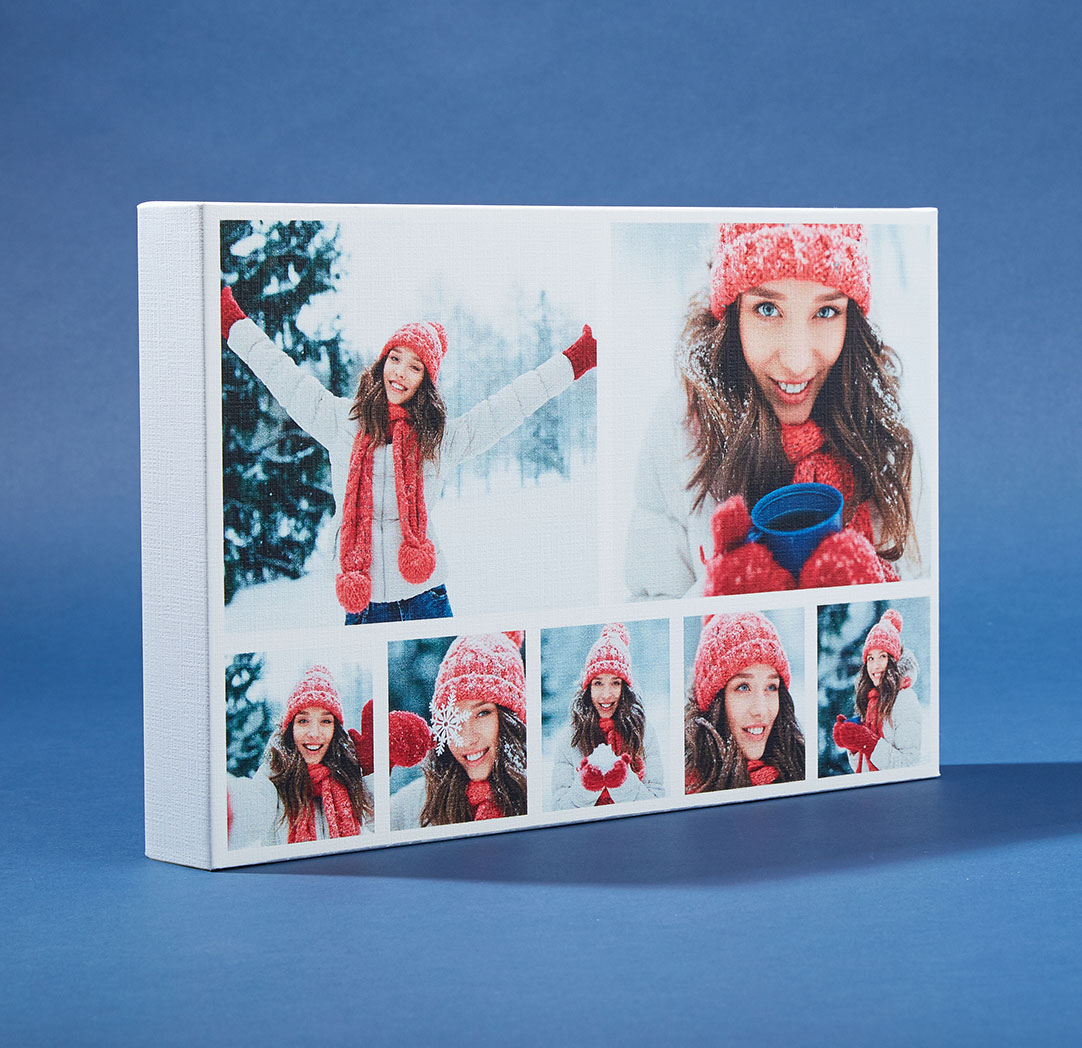 • 8x10, 8x12, 11x14, 12x12, 16x20, 20x30, 24x36 • Single Image or Create a Collage • Printed on rigid textured board • Folded to create 1.75" full wrap edge • Pick up in-store • Ship to Home