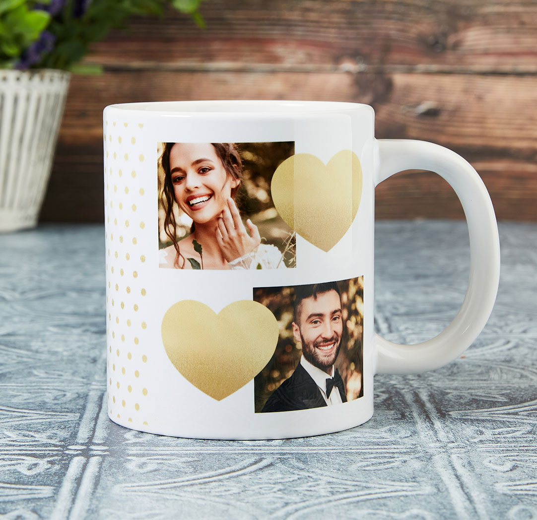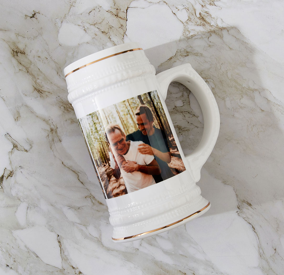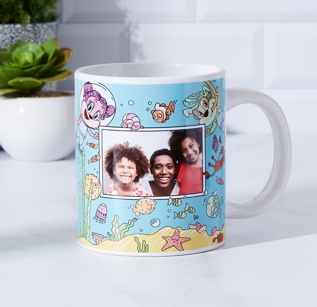 La tasse parfaite, assez grande pour profiter de votre café, thé, soupe ou crème glacée, ou même de vos céréales! Faite de céramique blanche de qualité, cette tasse de 25 onces convient aux boissons chaudes ou froides. Personnalisez-la en ajoutant jusqu’à 4 de vos photos préférées!