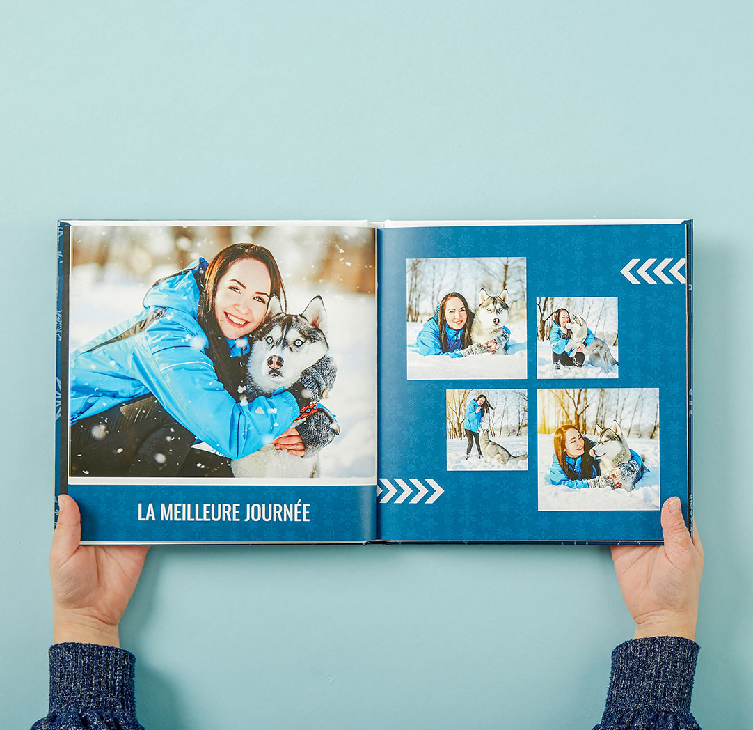 Albums photo de 20 pages et plus. Choisissez parmi une variété de thèmes et sélectionnez jusqu’à 300 de vos photos préférées. Laissez ensuite notre outil de remplissage intelligent créer un album imprimé parfait pour vos souvenirs. Vous aimez la créativité? Notre outil vous permet aussi de modifier chacune des pages de votre album photo. Des frais s’appliquent pour les pages supplémentaires.